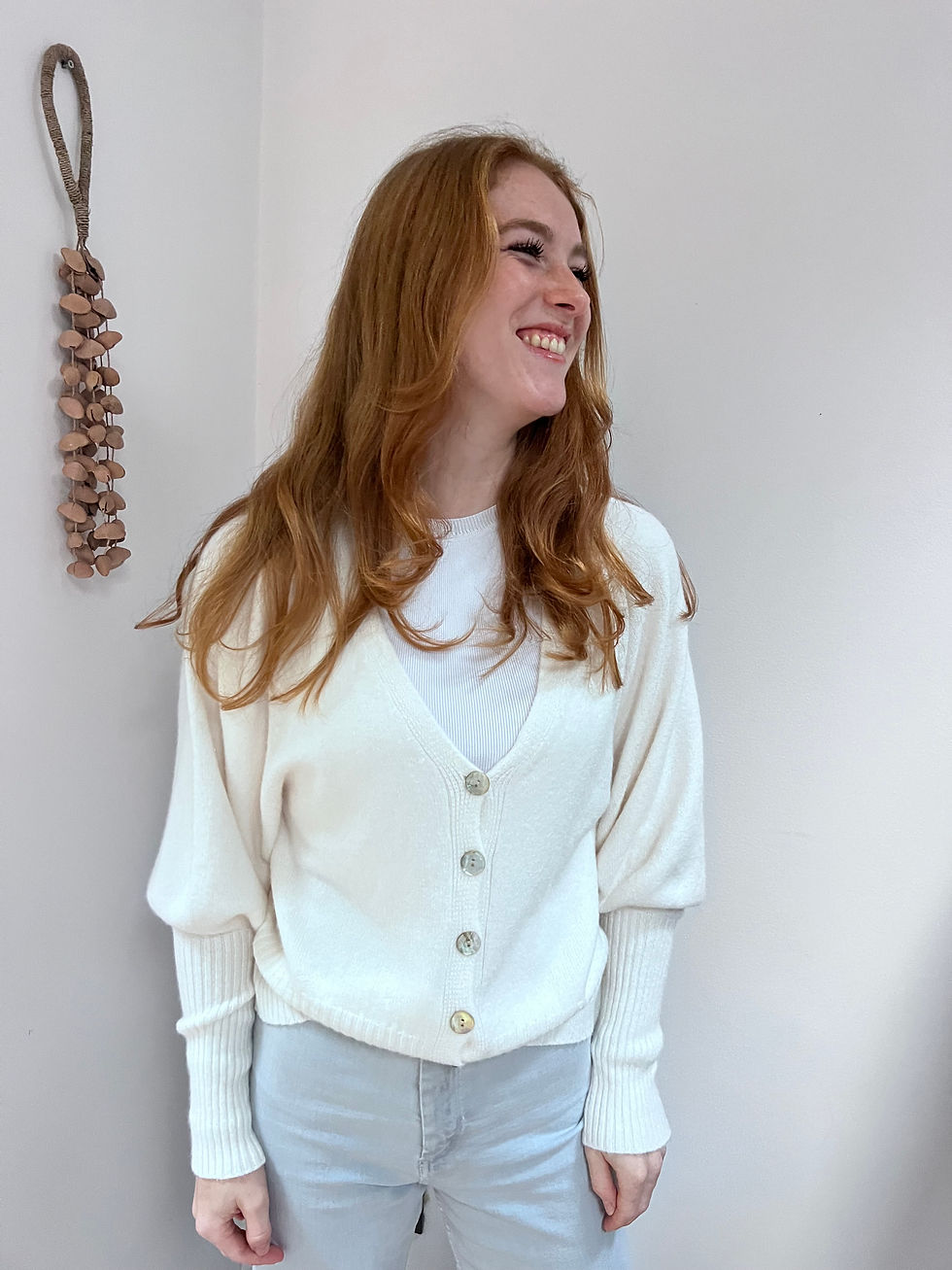 Cream cardigan, detailed cuffs