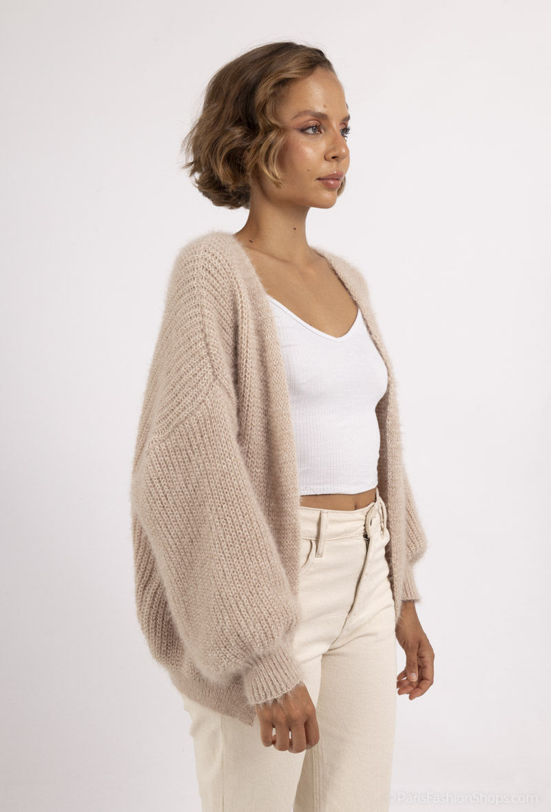 Soft knit cardigan with puff sleeves